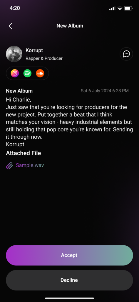 For paid projects, money is transferred into a secure escrow system once you’re accepted. This protects both the project creator and the collaborator. Payment is released from escrow automatically when the final deliverables are approved and the project is marked as complete.